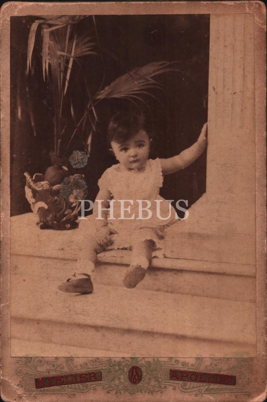 Ağlamaklı sevimli bebeğin kabin fotoğrafı, Foto Apollon [Gülmez Biraderler]- Constantinople, 11x16 cm
