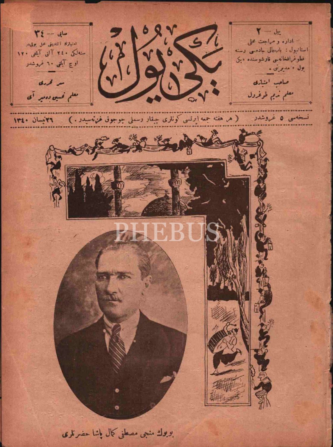 "Büyük Münci [Kurtarıcı] Mustafa Kemal Paşa [Atatürk] Hazretleri"nin kapağını süslediği resimli çocuk gazetesi YENİ YOL´un 34. sayısı, 26 Nisan 1340, 20x27 cm