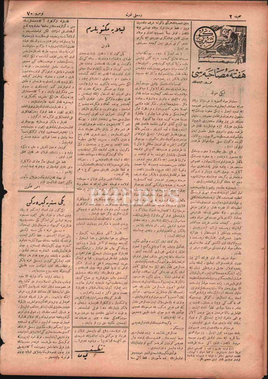 "57 Çocuk Katili İnsan Kasabının (Harman´ın) Mahkemesi", "Hayatınızda En Mesud Zamanınız Hangisidir?", "Darülfünun´da Hazırlanan Eserler" vd. başlıklı yazıları içermektedir.