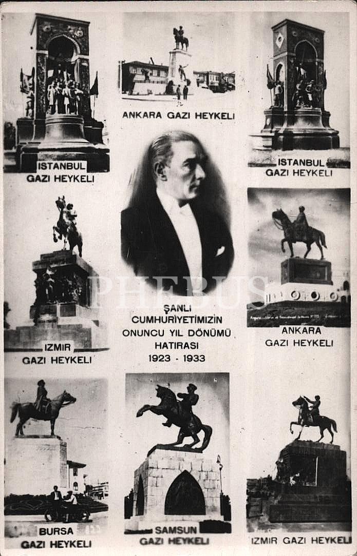 Atatürk görselli "Şanlı Cumhuriyetimizin 10. Yıl Dönümü Hatırası" yazılı parçalı kartpostal