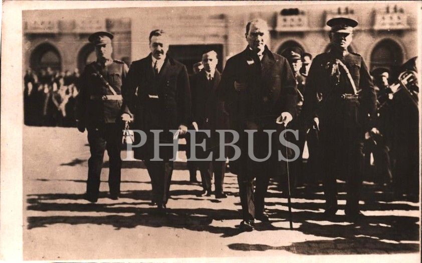 Mustafa Kemal Atatürk, İsmet İnönü ve başyaver Rusuhi Bey TBMM´den ayrılırken, 9x14 cm