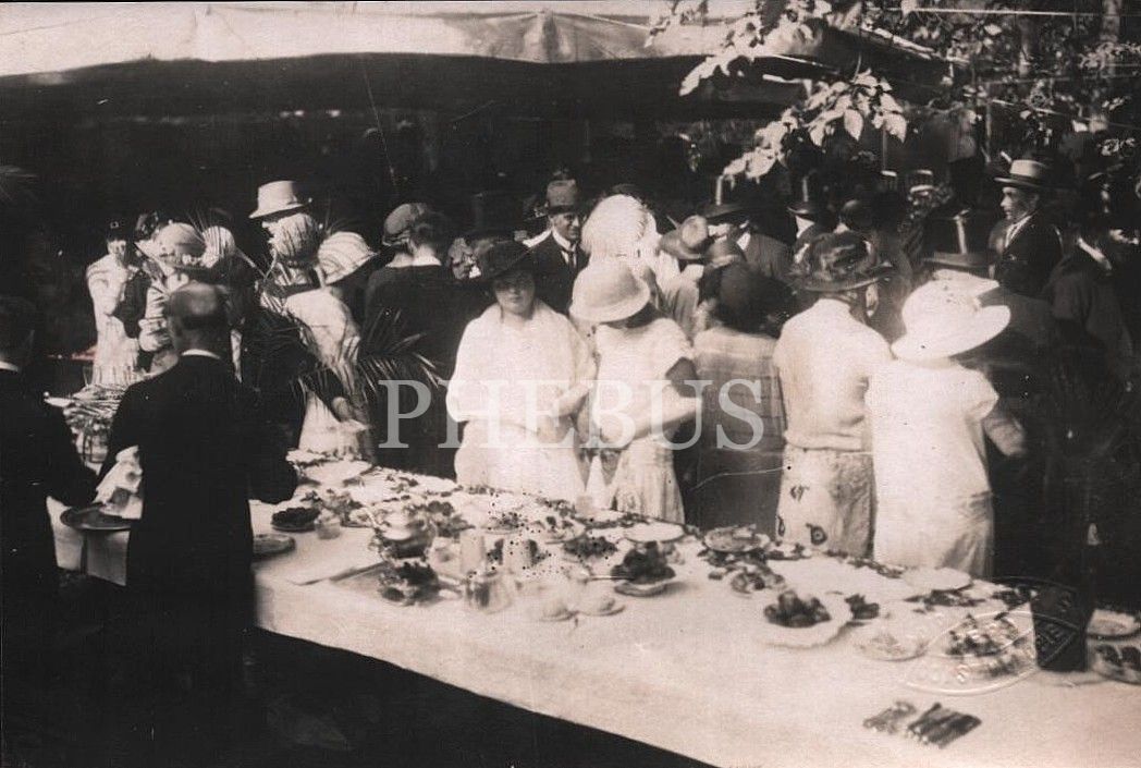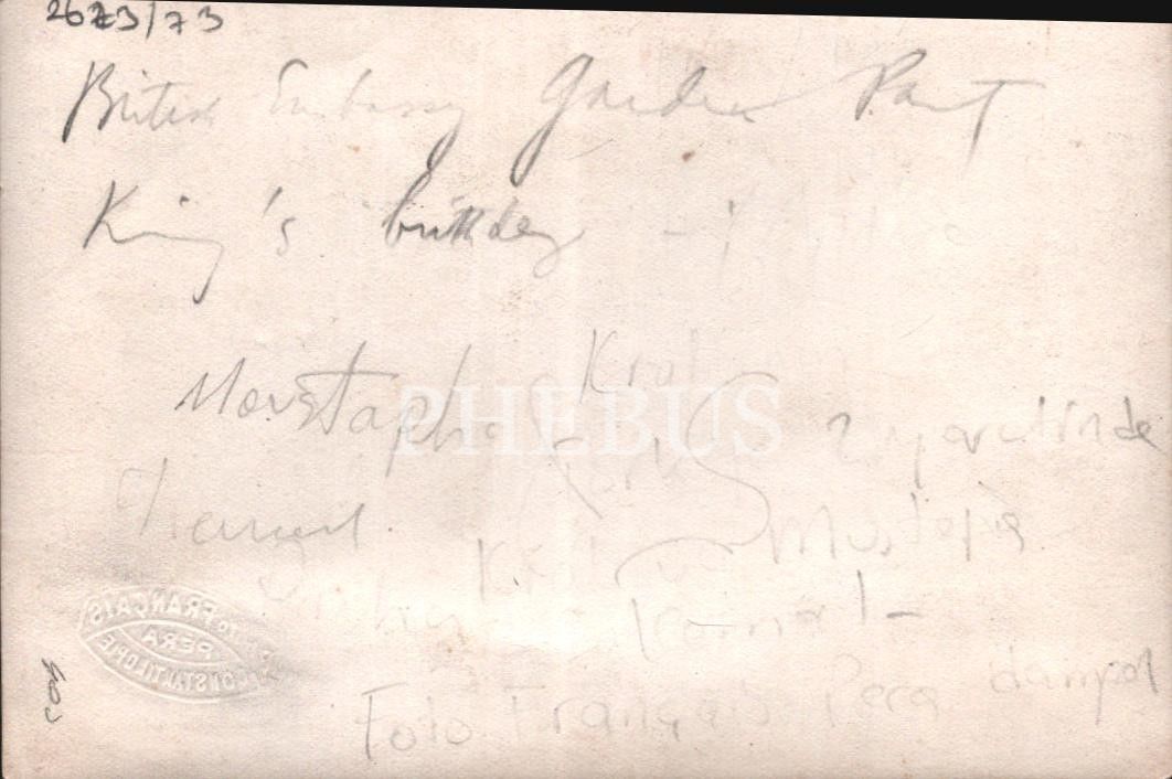 Mustafa Kemal Atatürk'ün katıldığı bir resepsiyonda şık giyimli insanlar, Foto Francais- Pera/Constantinople, 9x14 cm