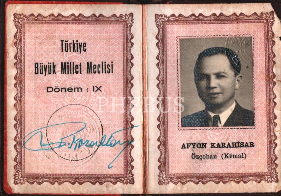 Afyonkarahisar Milletvekili Kemal Özçoban´a ait hüviyet varakası, 7x10 cm