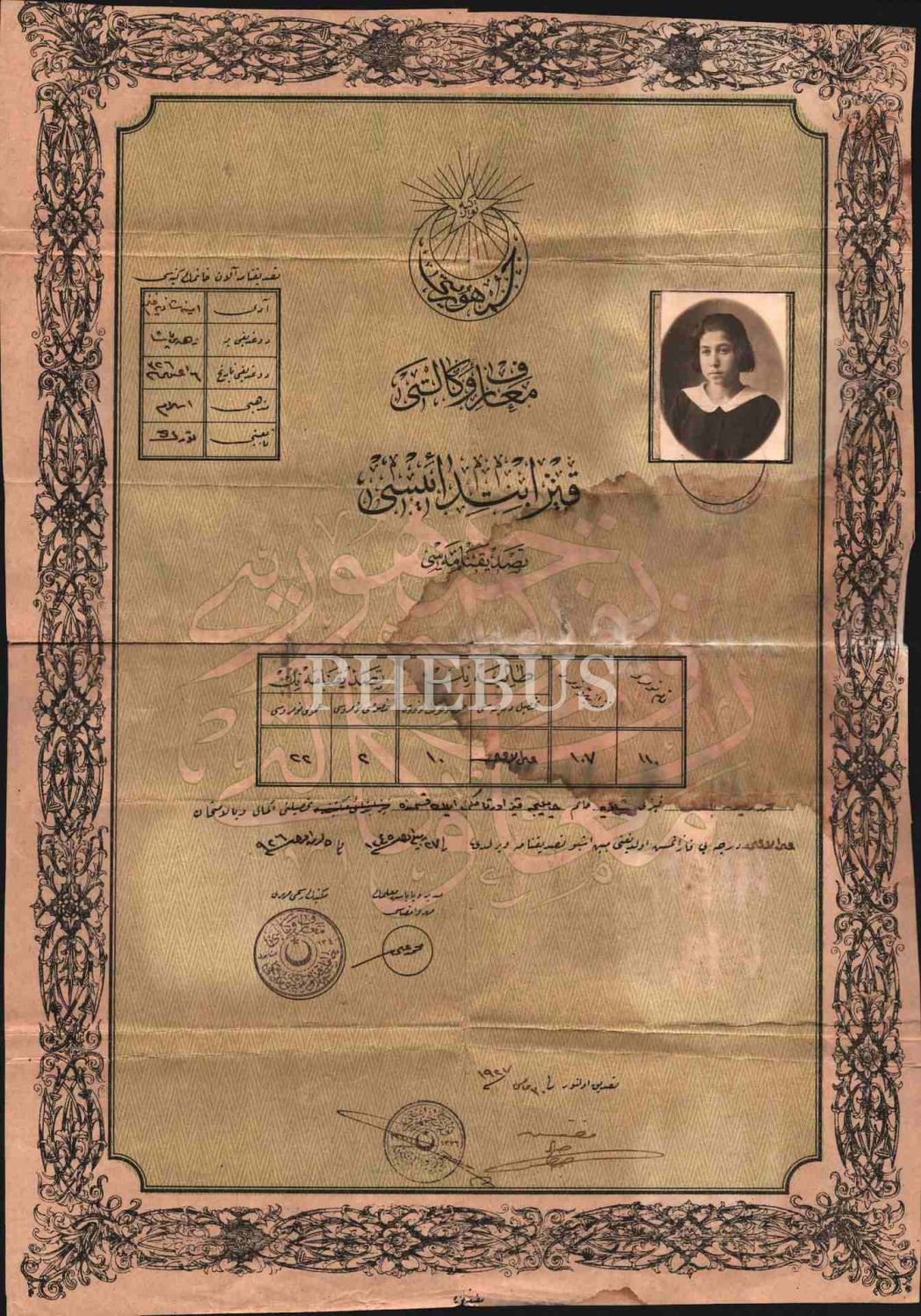 Kız ibtidaisi [Kız ilkokulu] öğrencisi Emine Şaziye´ye ait tasdikname, 1927, 28x40 cm