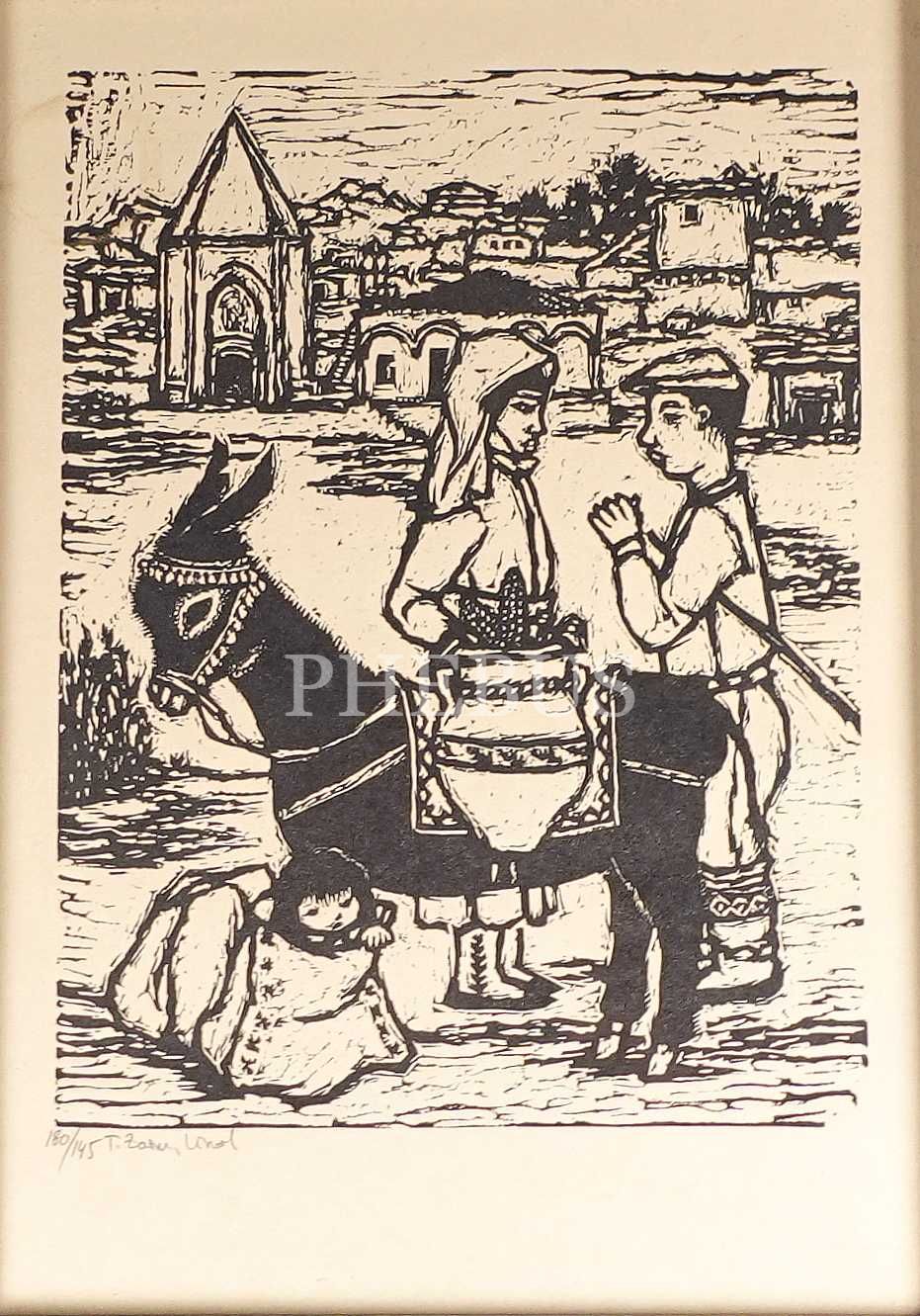 Turgut Zaim´in ölümünün ardından 1982-1983 yılında Yahşi Baraz Sanat Galerisinde açılan sergi için seçilip basılan ve sergiyi ziyaret eden sanatseverlere armağan edilen baskılardan olup, eserin alt köşesindeki paraf; ressamın kızı Oya Zaim Katoğlu tarafından atılmıştır.