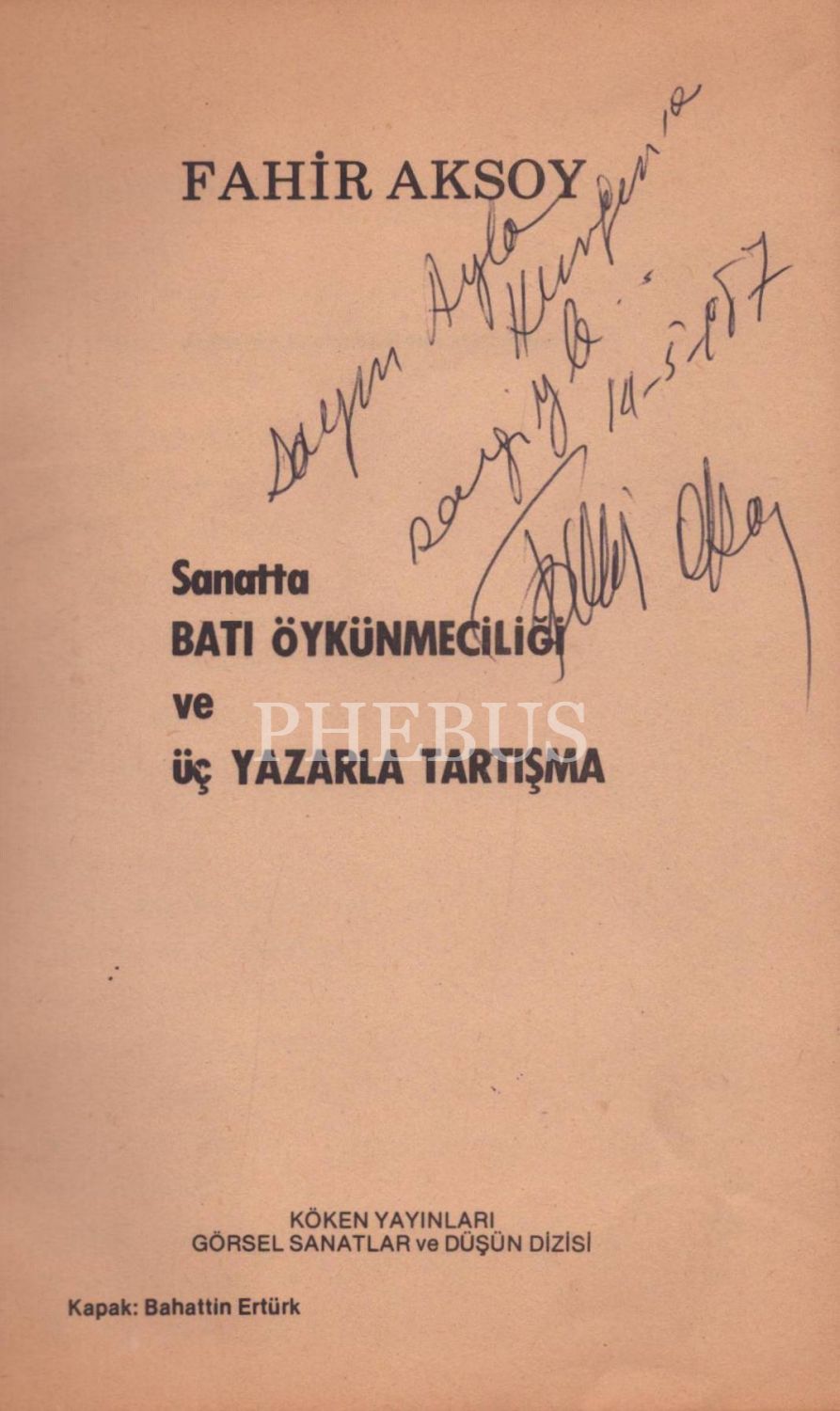 "Sayın Ayla Hüngen´e saygıyla, 14.5.987" ithaf ve imzasıyla....