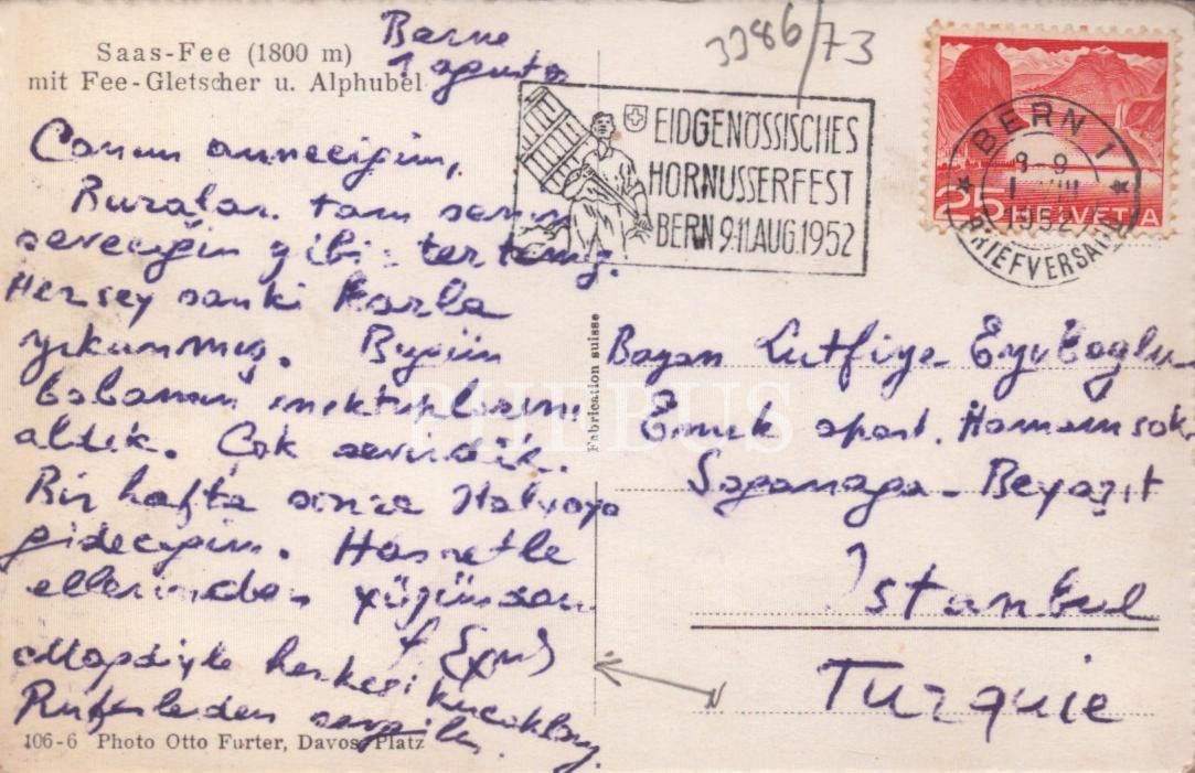 Sabahattin Eyüboğlu´dan annesi Lütfiye Eyüboğlu´ya gönderilen imzalı kartpostal, Berlin 1952 damgalı, 9x14 cm