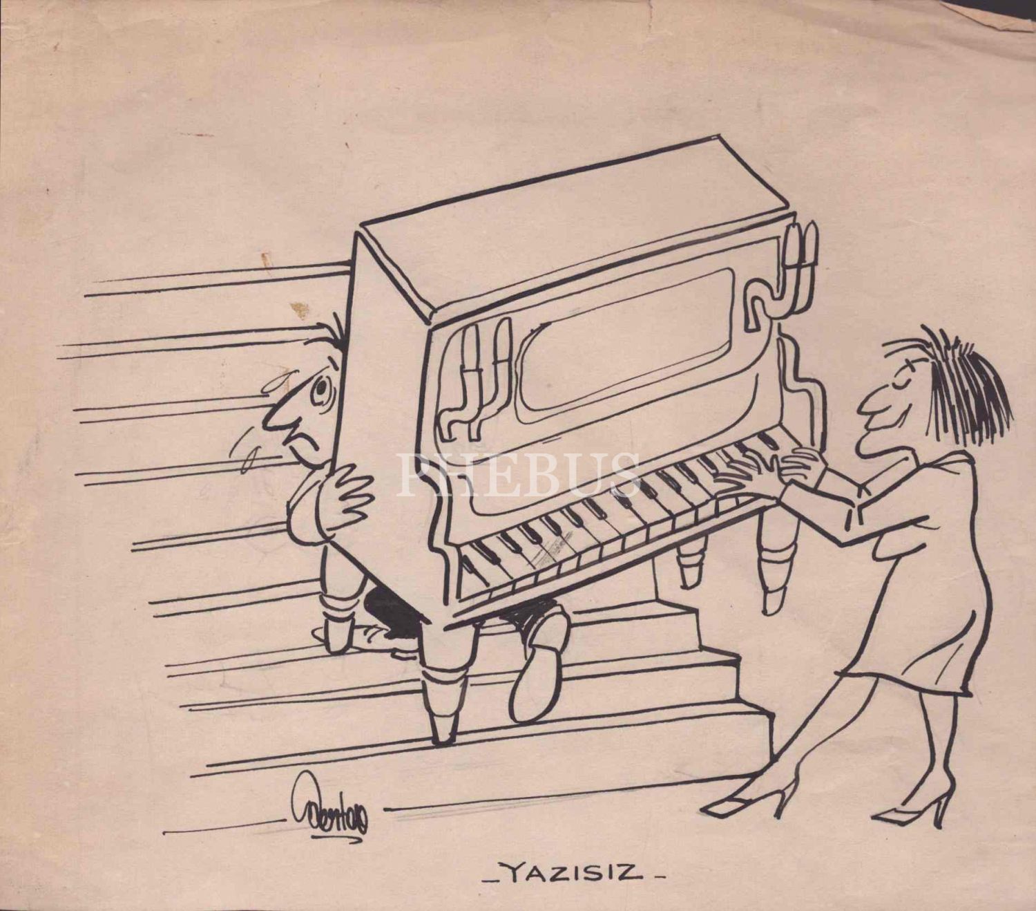 Pertev [Ertün] imzalı karikatür, 21x24 cm