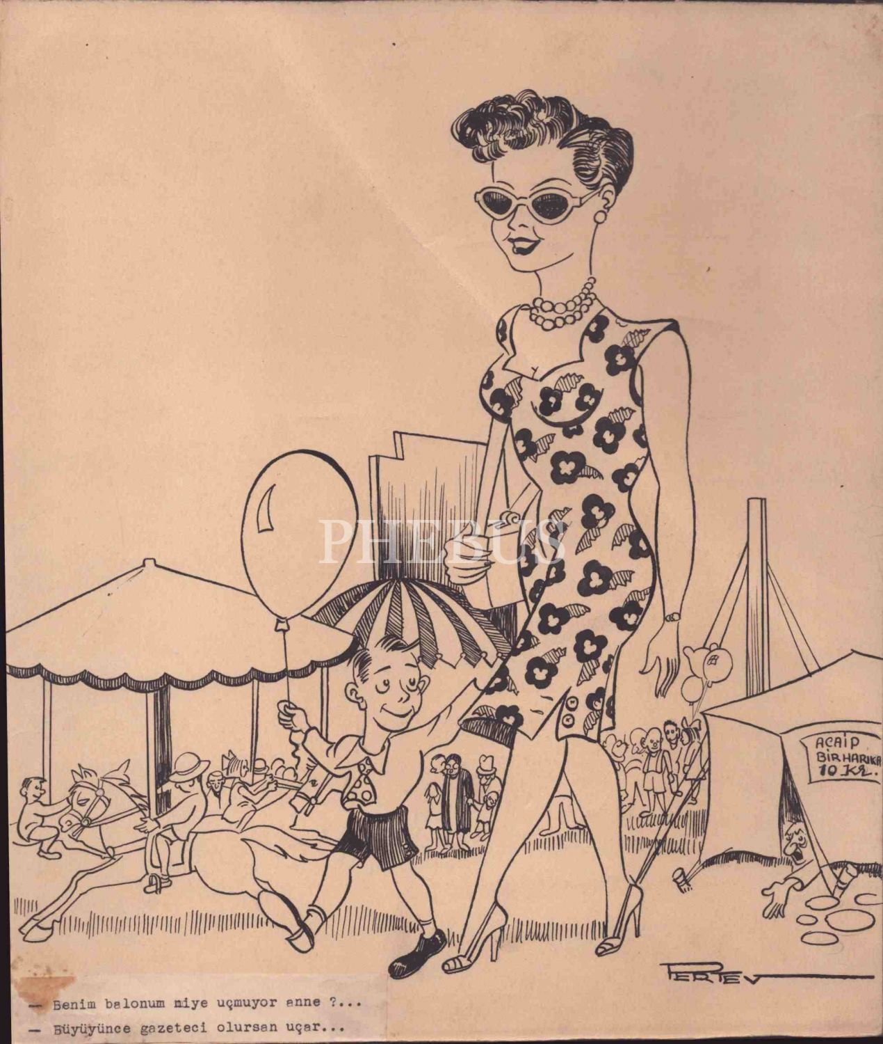 Pertev [Ertün] imzalı karikatür, 28x30 cm