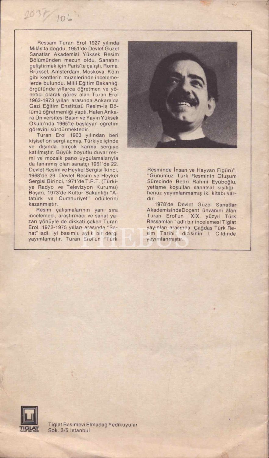 Turan Erol sergi tanıtım broşürü, Tiglat Sanat Galerisi, 16x28 cm