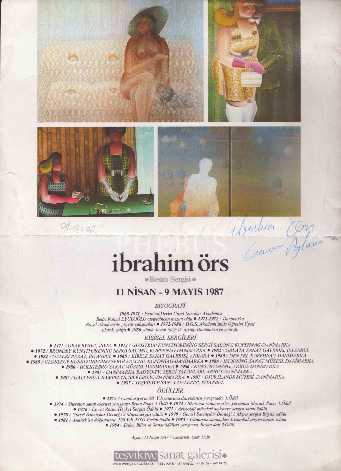 Bedri Rahmi Eyüboğlu´nun öğrencisi ve asistanı olan ressam İbrahim Örs'ten imzalı resim sergisi tanıtım broşürü, Teşvikiye Sanat Galerisi, 1987, 23x16 cm