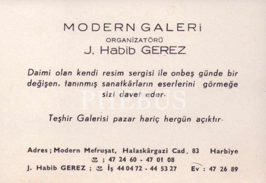 J. Habib Gerez´ın kartvizit şeklinde resim sergisi açılış davetiyesi, Teşhir Galerisi, 8x11 cm