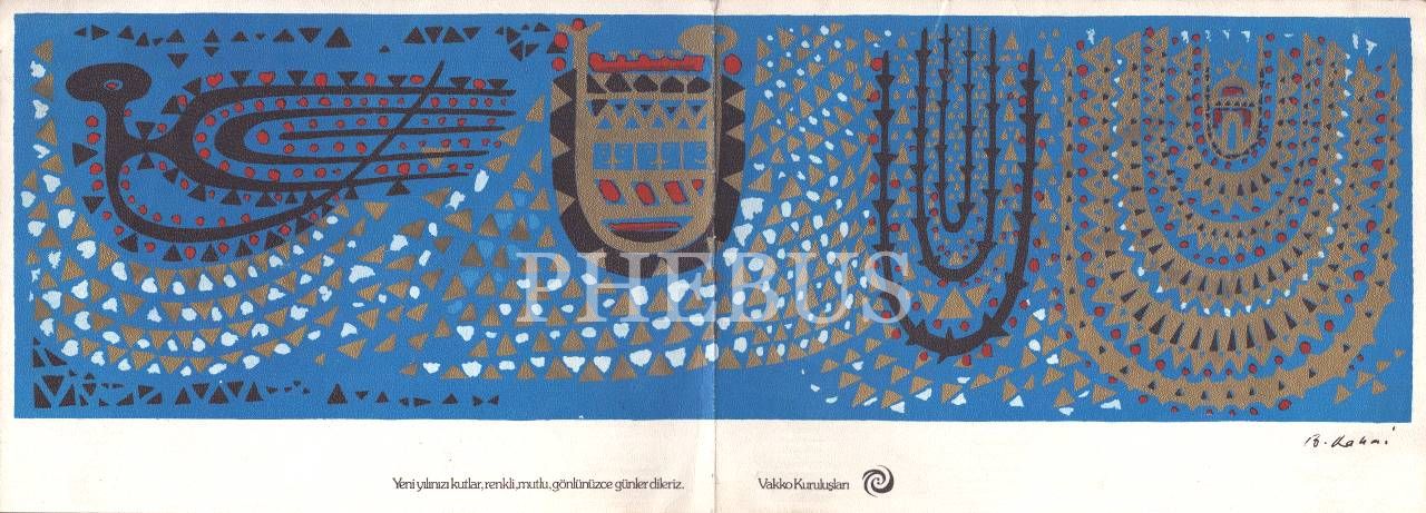 Bedri Rahmi Eyüboğlu tarafından imzalı yeni yıl tebrik kartı, Vakko Kuruluşları, 16x22 cm