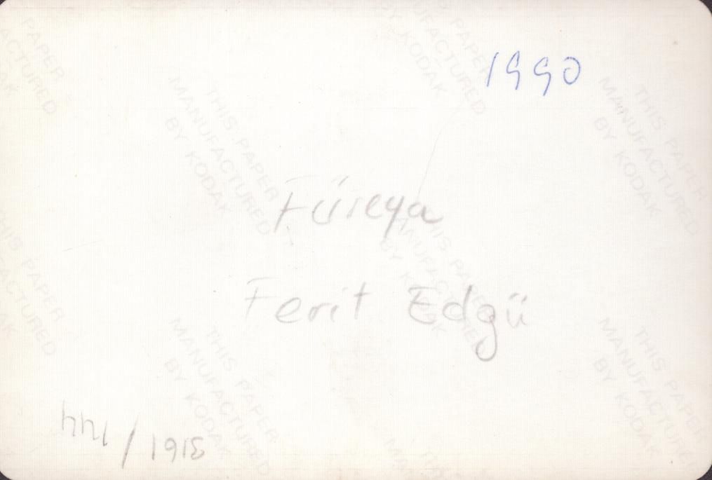 İlk Türk profesyonel kadın seramik sanatçısı Füreya Koral ile yazar Ferit Edgü´nün buluşmasından bir kare, 9x13 cm