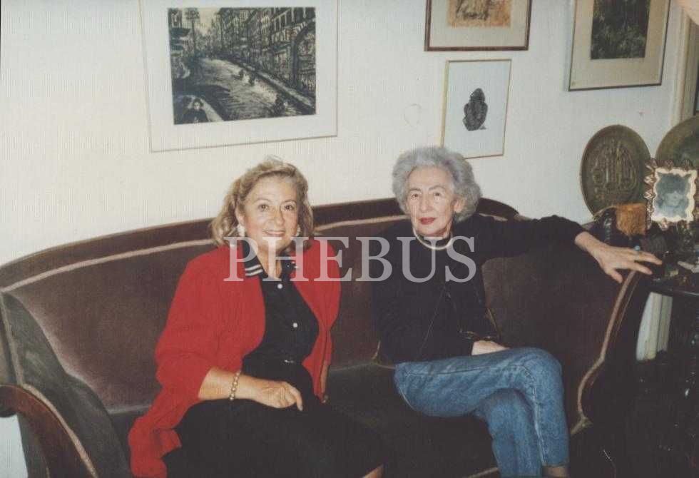 Seramik sanatçısı Füreya Koral ile Gazeteci Selma Selçuker kameraya gülümserken, 8x13 cm