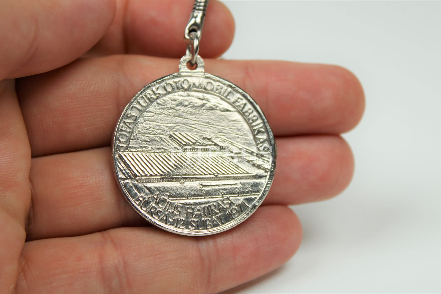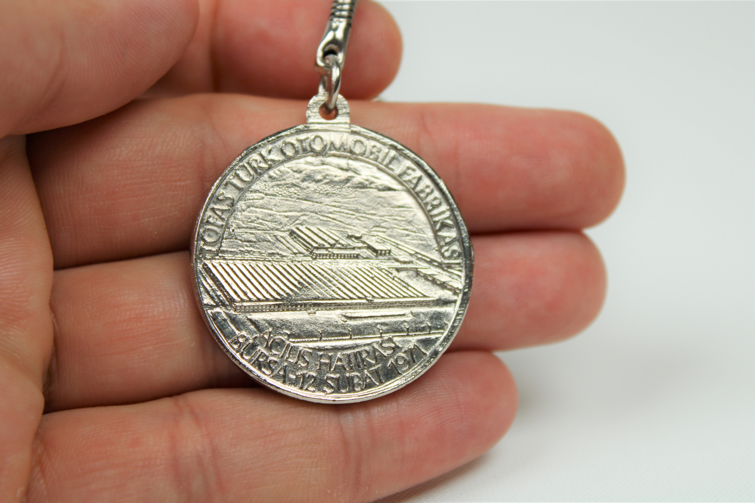 Murat 124 anahtarlık, Tofaş Türk Otomobil Fabrikası açılış hatırası, Bursa 12 Şubat 1971, metal, çil durumda