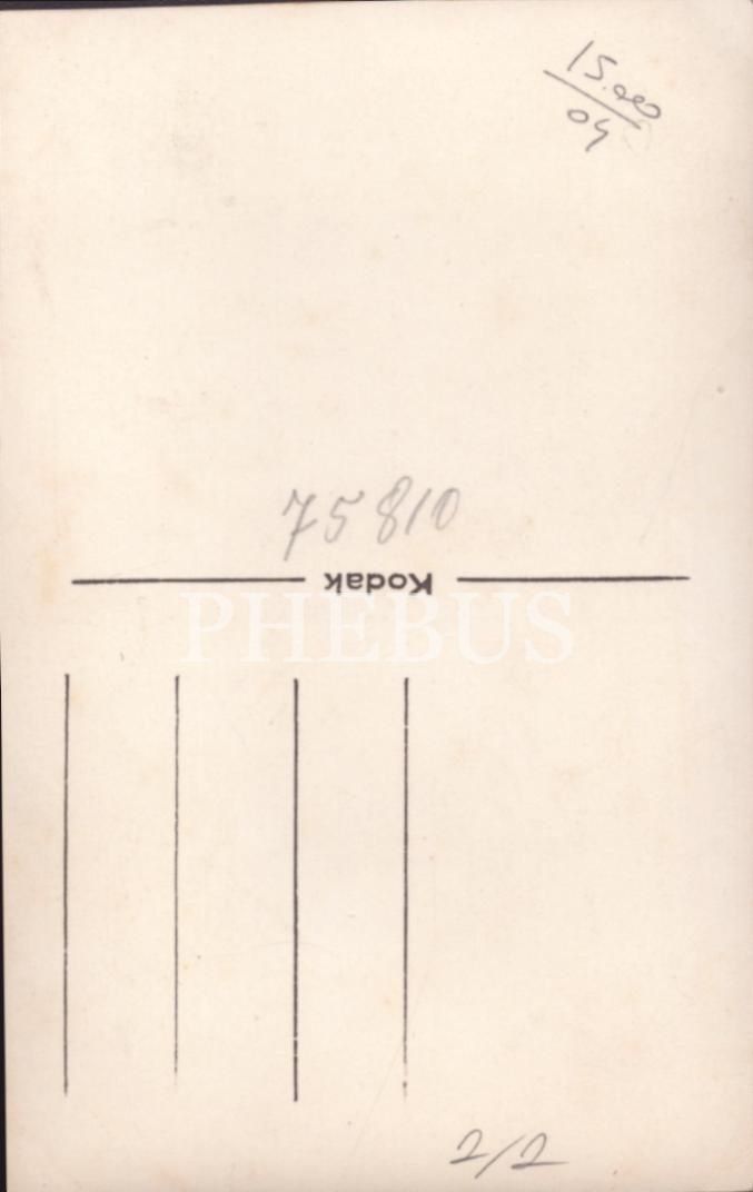"İzmir" yazılı denizci şapkası ve kostümüyle poz veren küçük kızın "Foto Rekor" damgalı stüdyo hatıra fotoğrafı, 9x14 cm