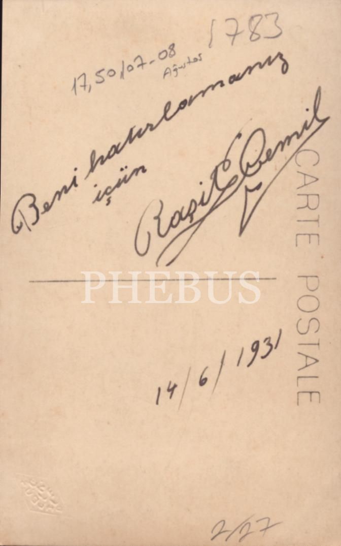 İthaf, "Benim hatırlamanız içün. Raşit Cemil 14/6/1931" şeklindedir.