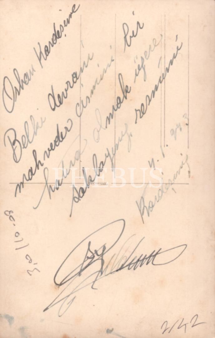 İthaf, "Orhan Kardeşime, Belki devranı mahveden cismimi bir hatıra olmak üzere saklayınız resmimi. 4.1.943 Kardeşiniz ?" şeklindedir.