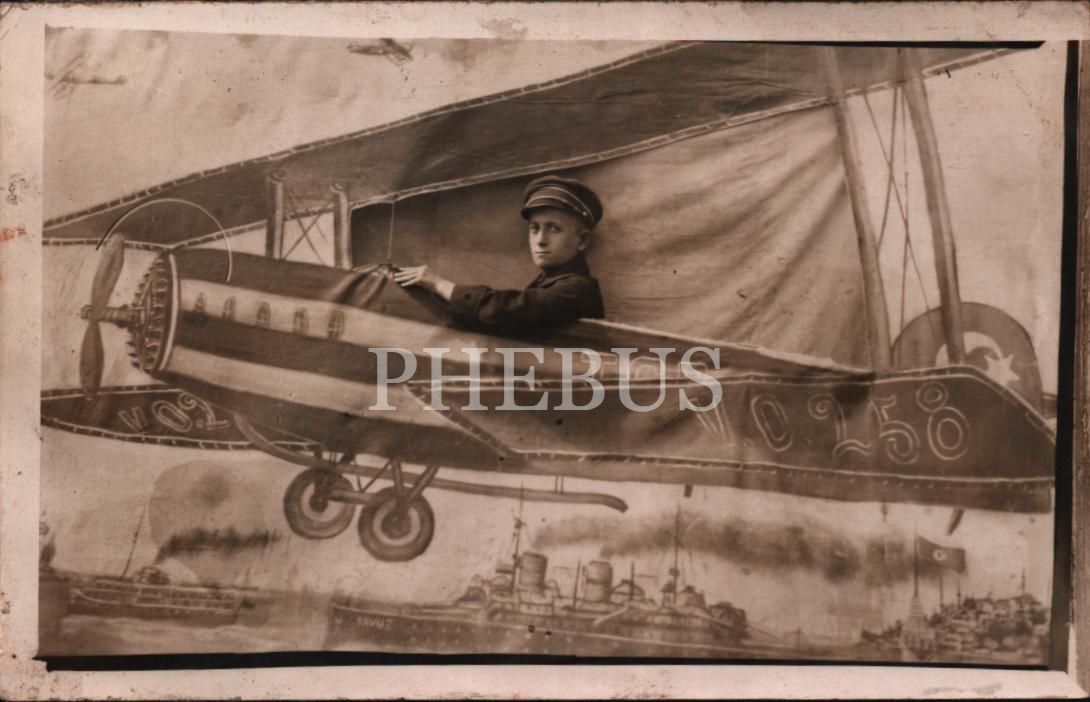Kuyruk numaralı ve ay yıldızlı fotoğrafçı tayyaresinde bir hatıra fotoğrafı, 14x9 cm