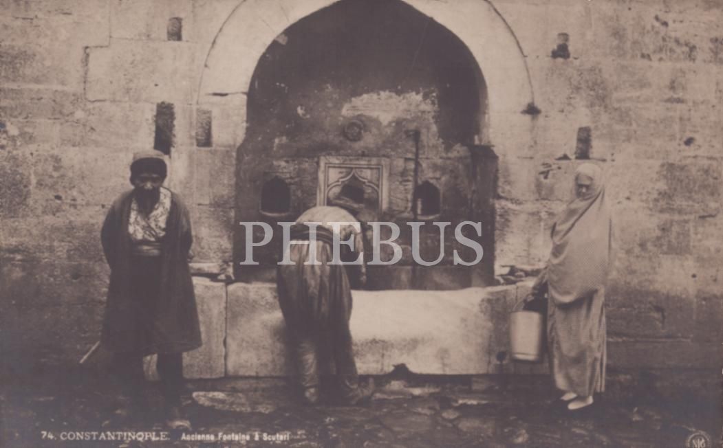 Çeşme başında su sırası bekleyen insanlar, Constantinople, 9x14 cm