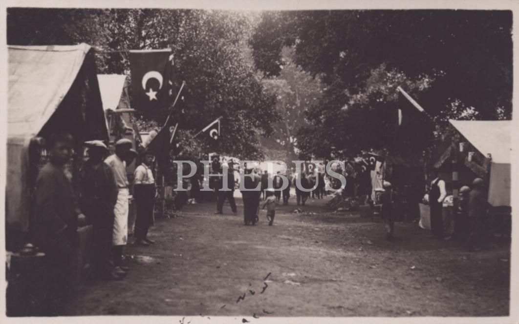 Bayraklarla süslü Gönen panayırı, Foto Mehmet Nuri Gönen damgalı, 9x14 cm