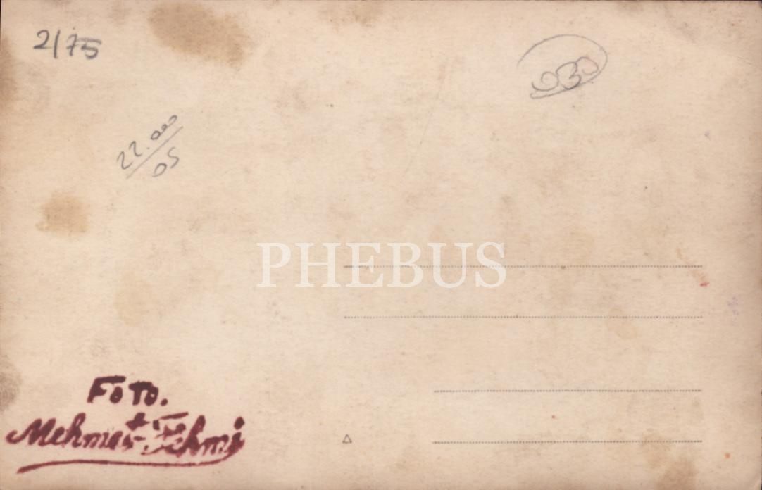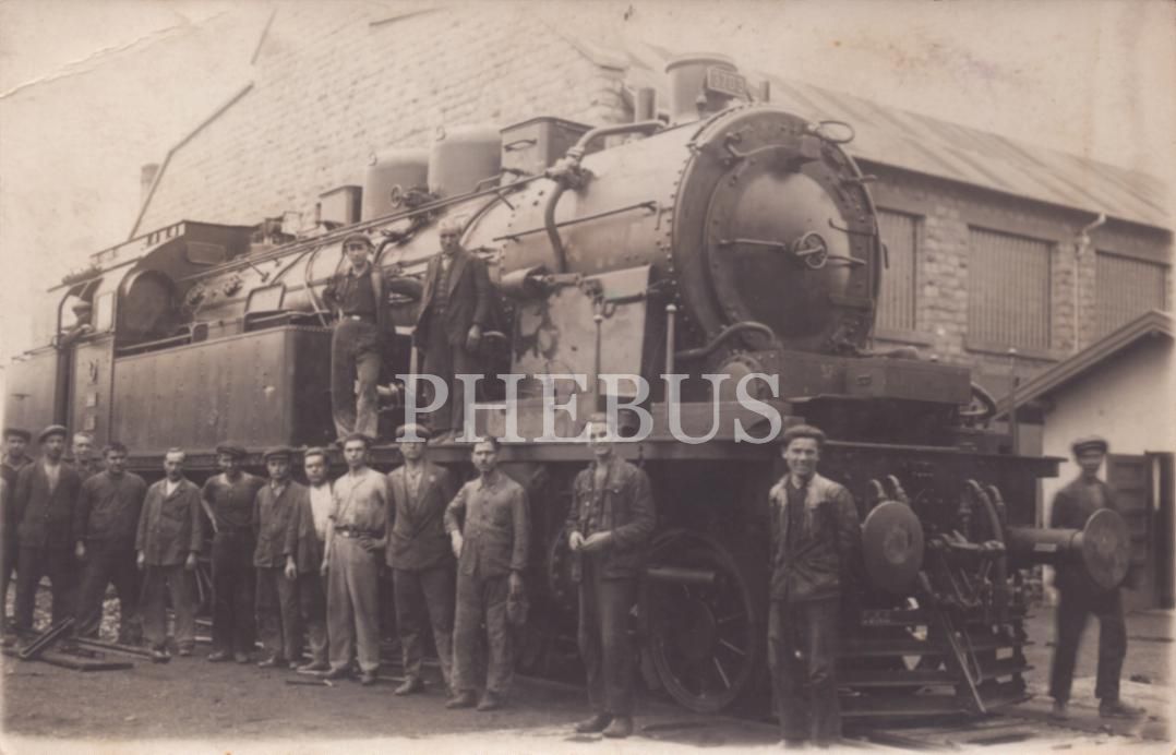 3703 numaralı buharlı lokomotif önünde poz veren makinist ve işçiler, Foto Mehmet Fehmi damgalı, 9x14 cm