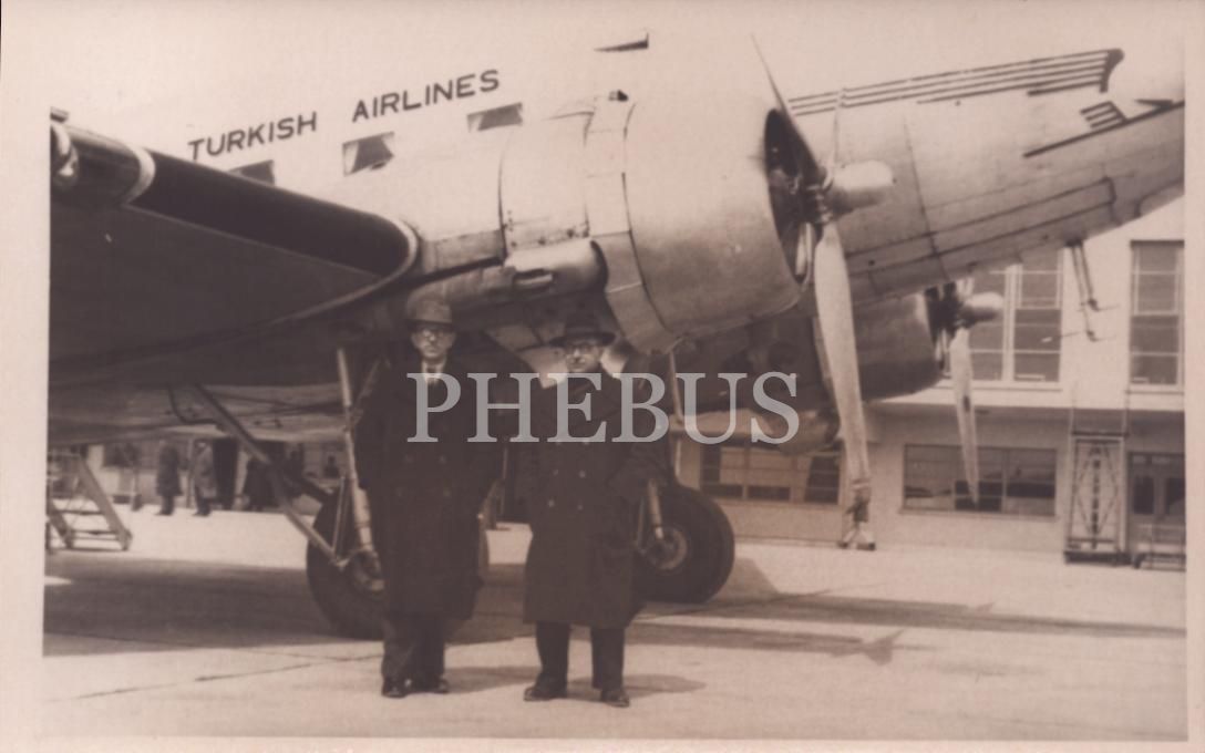 Türk Hava Yolları uçağının önünde poz veren şık beyefendiler, 9x14 cm