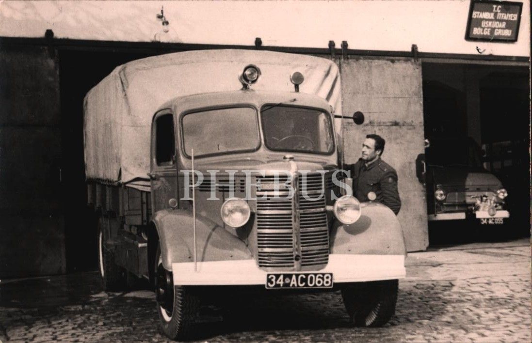 İstanbul İtfaiyesi Üsküdar Bölge Grubu itfaiyeci ve arabası, 9x14 cm