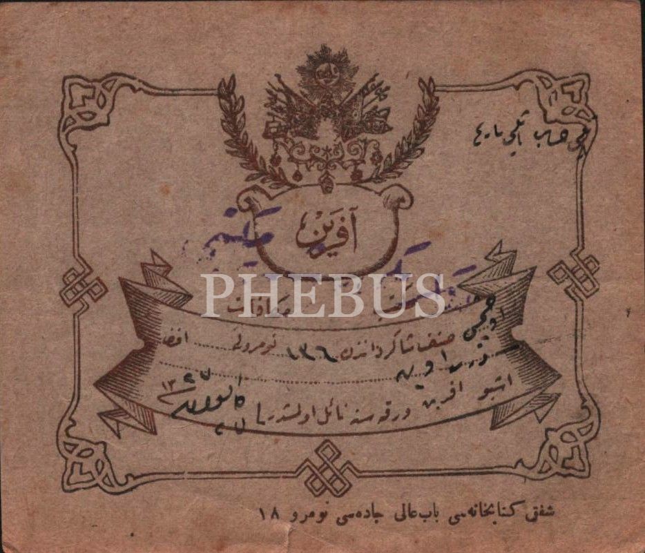 Üçüncü sınıf öğrencisine ait 1327 tarihli aferin kâğıdı, 10x12 cm