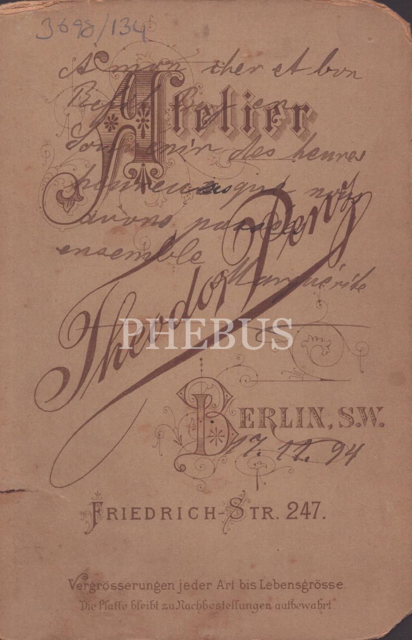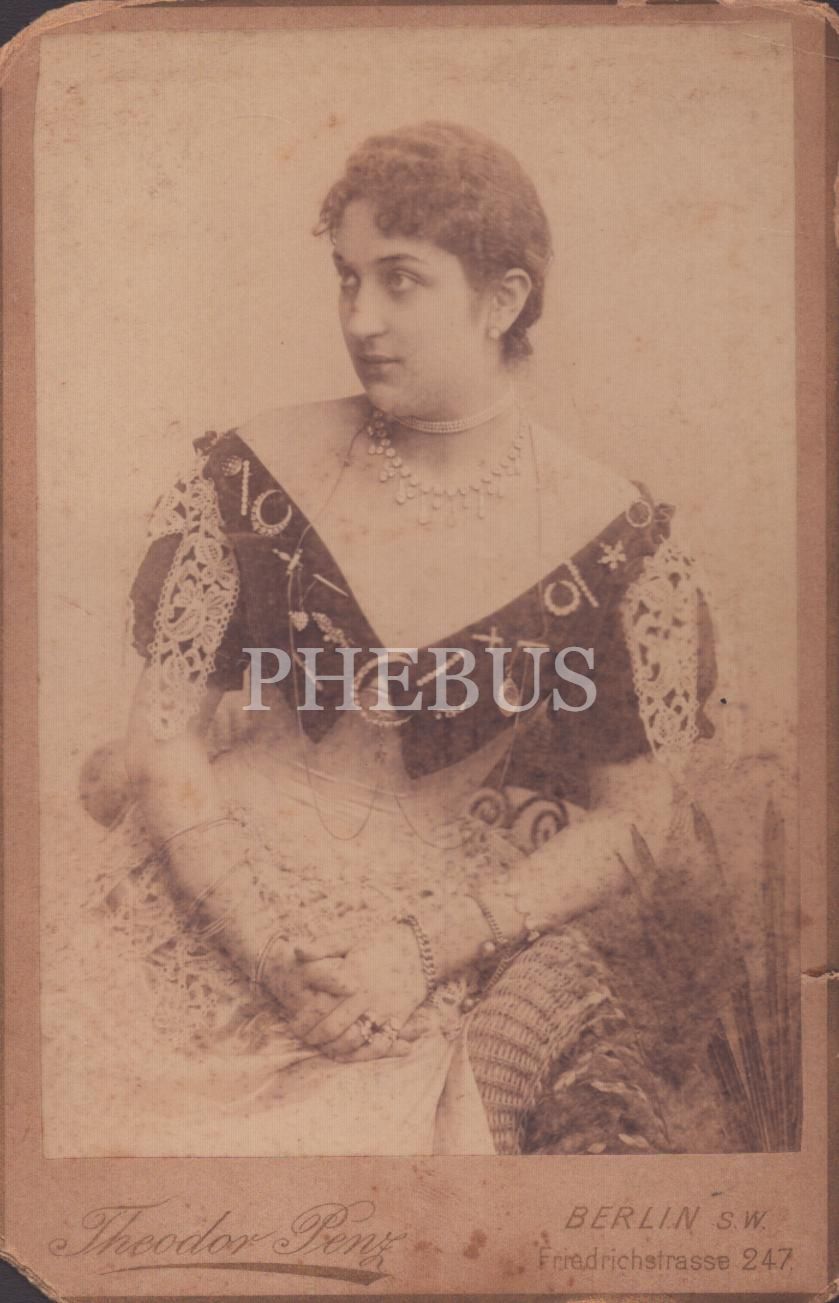 İşlemeli yakası ve takılarıyla süslü hanımefendinin kabin fotoğrafı, Theodor Penz- Berlin, 11x17 cm