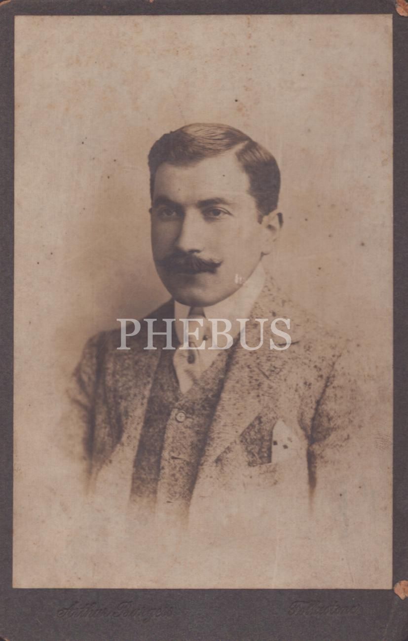 Şık giyimli beyefendinin kabin fotoğrafı, Foto Arthur Burgess, 11x16 cm