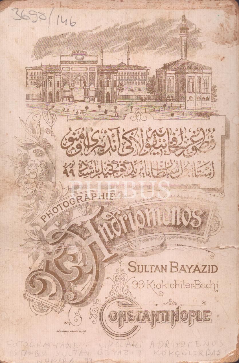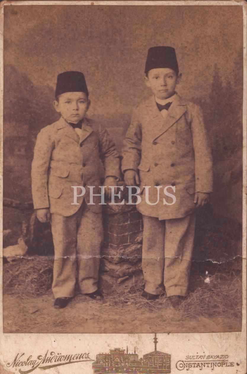 Fesli miniklerin kabin fotoğrafı, Nicolay Andriomenos Fotoğrafhanesi Constantinople, 11x16 cm