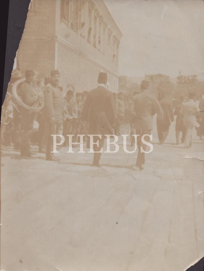 Bir tören esnasında bando önünden geçen devlet erkânı, 9x12 cm