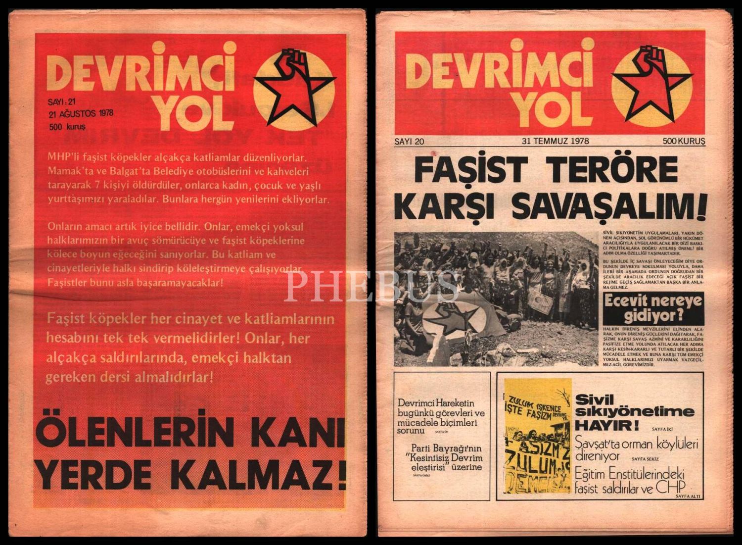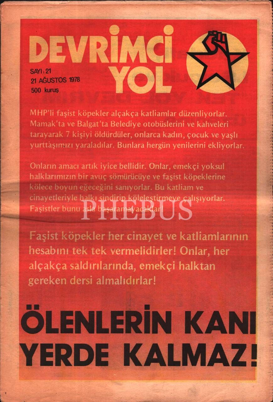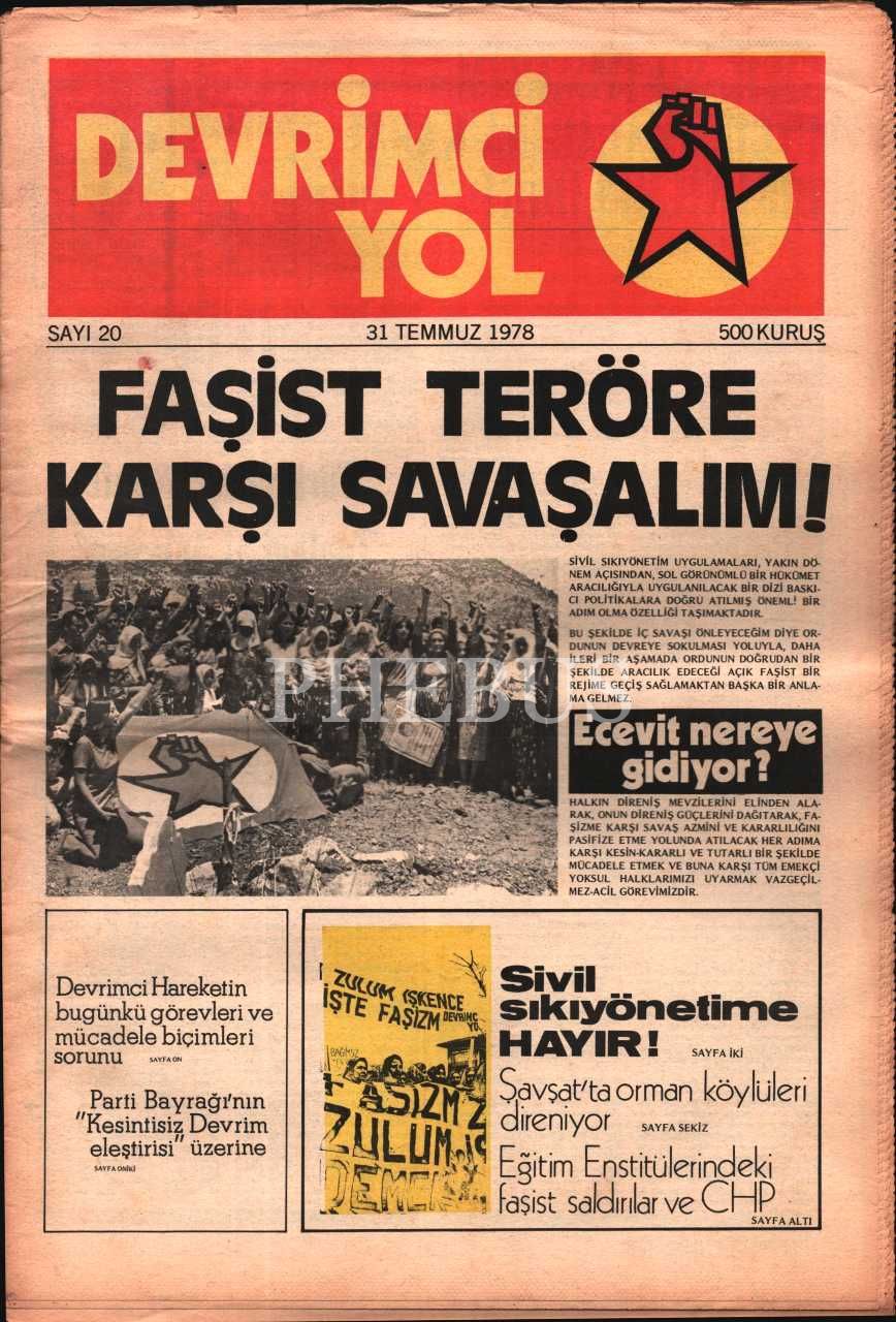 Siyasi DEVRİMCİ YOL dergisinin 1978 tarihli 20. ve 21. sayıları, 29x43 cm
