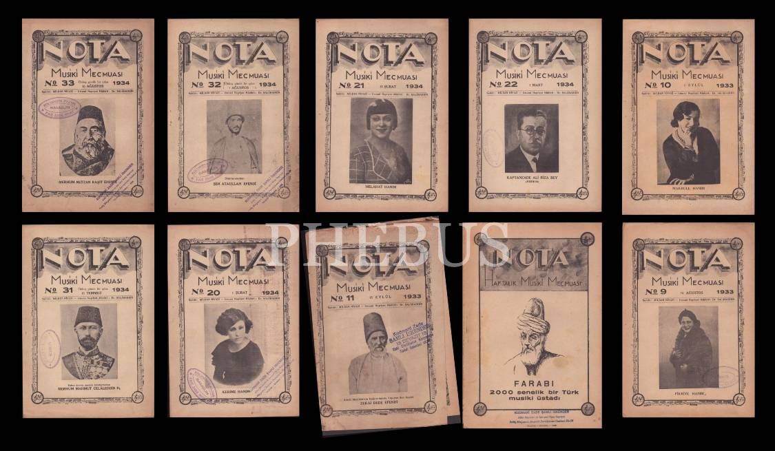 NOTA Musiki Mecmuası, Nûmune Matbaası, İstanbul 1933-34, 17x24 cm (10 adet)