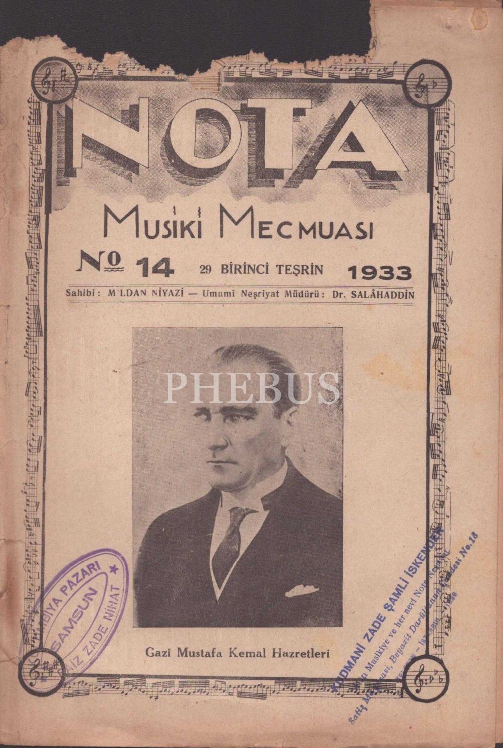 M. Kemal Atatürk görselli NOTA Musiki Mecmuası, Nûmune Matbaası, İstanbul 1933, 17x24 cm