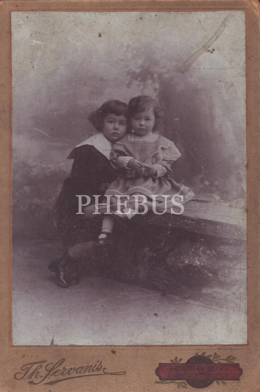 Sevimli miniklerin kardeşlik hatırası, Foto Th. Servanis- Constantinople, 12x16 cm