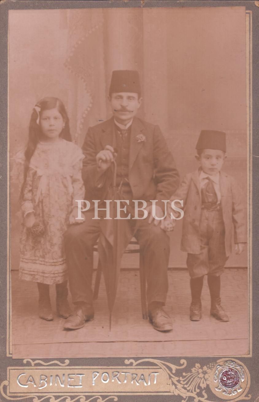 Fesli beyefendi ile çocuklarının kabin fotoğrafı, 11x17 cm