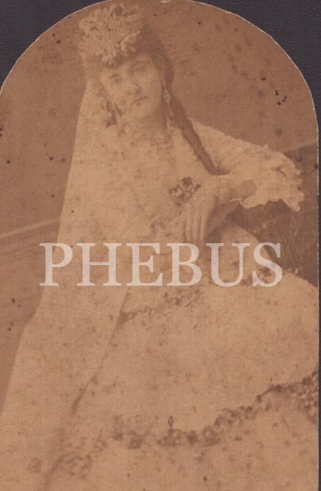 Gelinlikli zarif hanımefendinin kabin fotoğrafı, Foto Pascal Sebah- Constantinople, 6x9 cm