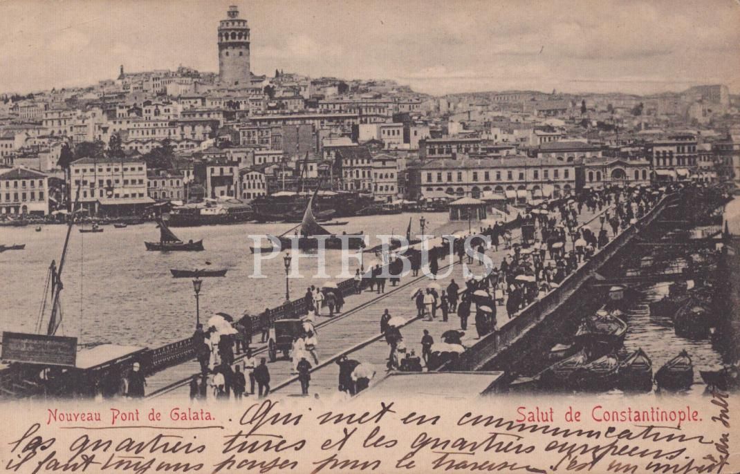 Galata Köprüsü genel görünümü, Constantinople, postadan geçmiş
