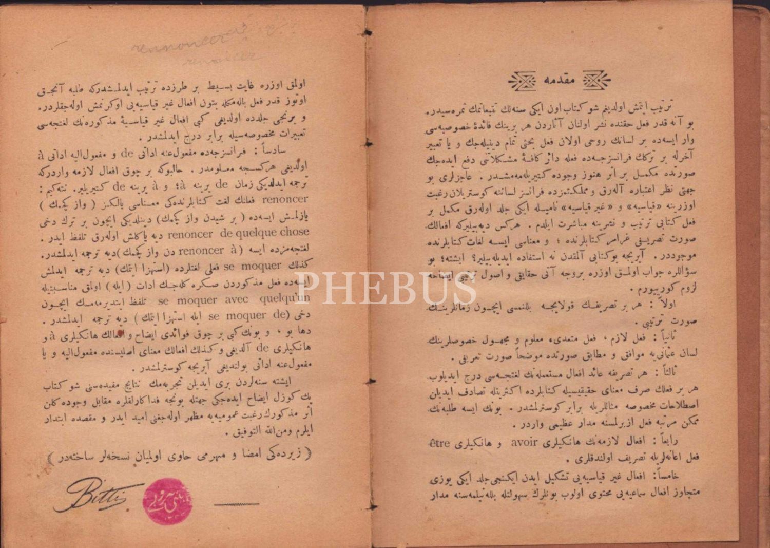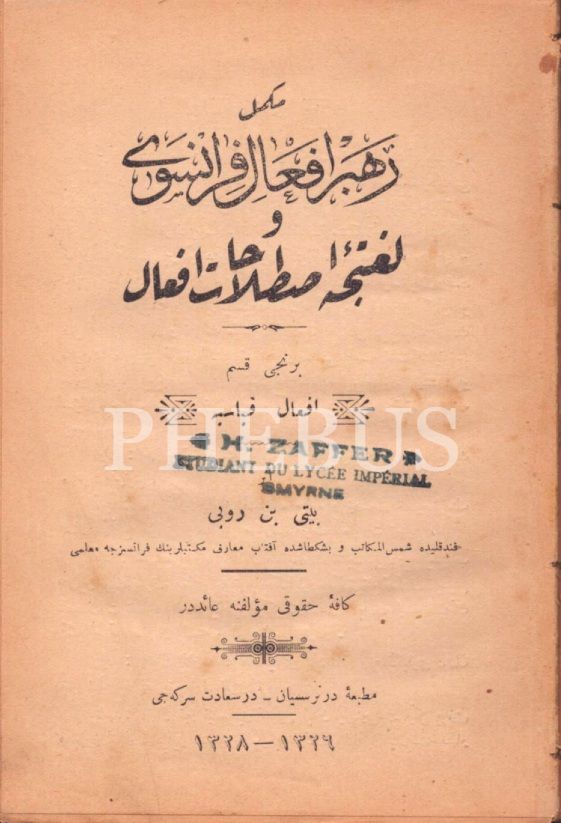 MÜKEMMEL REHBER-İ EF´ÂL-İ FRANSEVÎ VE LÜGATCE-İ ISTILÂHÂT-I EF´ÂL (1. Kısım: Ef´âl-i Kıyâsiyye), Bitti Ben Rubi, Der Nersesyan Matbaası, İstanbul 1328, 103 s., 13x18 cm