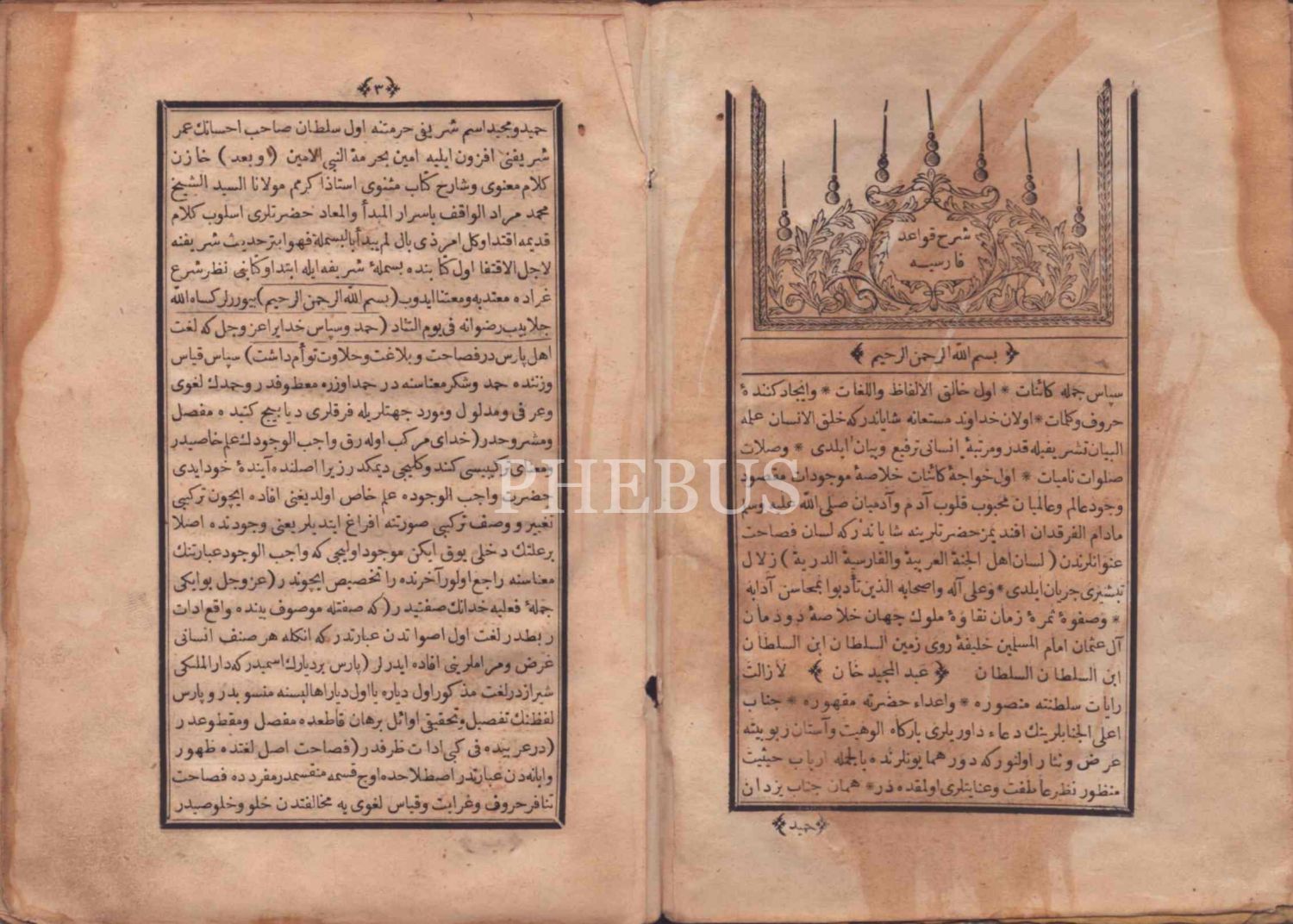 Ebrulu cildinde ŞERH-İ KAVÂİD-İ FÂRİSİYYE, Şeyh Mehmed Murad, şerh eden: Mehmed Tevfik Efendi, Darüttıbaati´l-Amire, 1267, 60 s., 14x21 cm