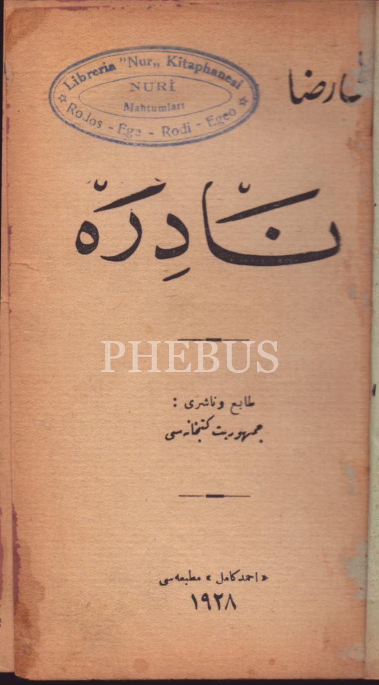 NÂDİRE, Ali Rıza, Ahmed Kâmil Matbaası, 1928, 140 s., 12x18 cm