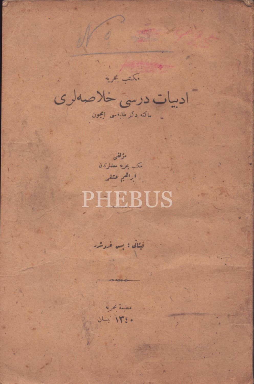 MEKTEB-İ BAHRİYYE EDEBİYYÂT DERSİ HULÂSALARI (Makine Deniz Talebesi İçin), İbrahim Aşkî, Bahriye Matbaası, 1340, 33 s., 16x24 cm