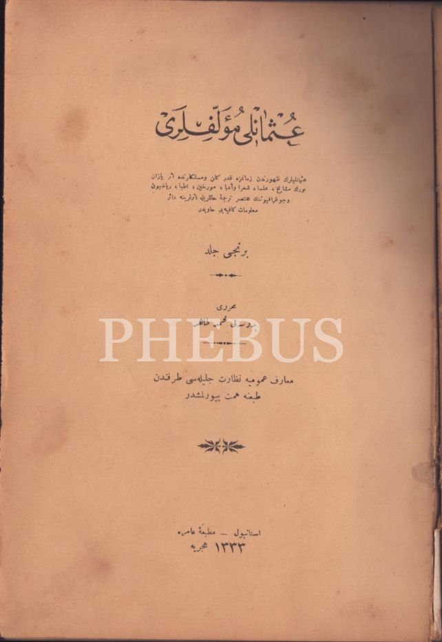OSMANLI MÜELLİFLERİ (1. Cilt), Bursalı Mehmed Tahir, Amire Matbaası, İstanbul 1333, 406 s., 19x26 cm