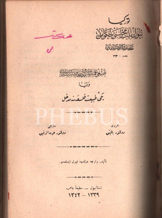 TABÎÎ İLİMLERİN UMÛMÎ NETÎCE VE MESELELERİ VEYA YENİ TABÎAT FELSEFESİNE MEDHAL, Dr. Bavink, çev. Avnürrefik, Amire Matbaası, İstanbul 1339, 171 s.; MUÂSIR AVRUPA´DA SİYÂSÎ VE İCTİMÂÎ FİKİRLER VE FİKRÎ CEREYÂNLAR, Akçuraoğlu Yusuf, Amire Matbaası, İstanbul 1339, 94 s.; FROBEL USÛLÜYLE KÜÇÜK ÇOCUKLARIN TERBİYESİ, Amire Matbaası, İstanbul 1340, 202 s., 17x24 cm