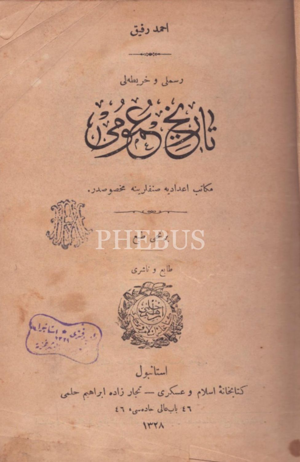 RESİMLİ VE HARÎTALI TÂRÎH-İ UMÛMÎ [Ders Kitabı], Ahmed Refik, Kitabhane-i İslam ve Askerî, İstanbul 1328, 416 s., 14x20 cm