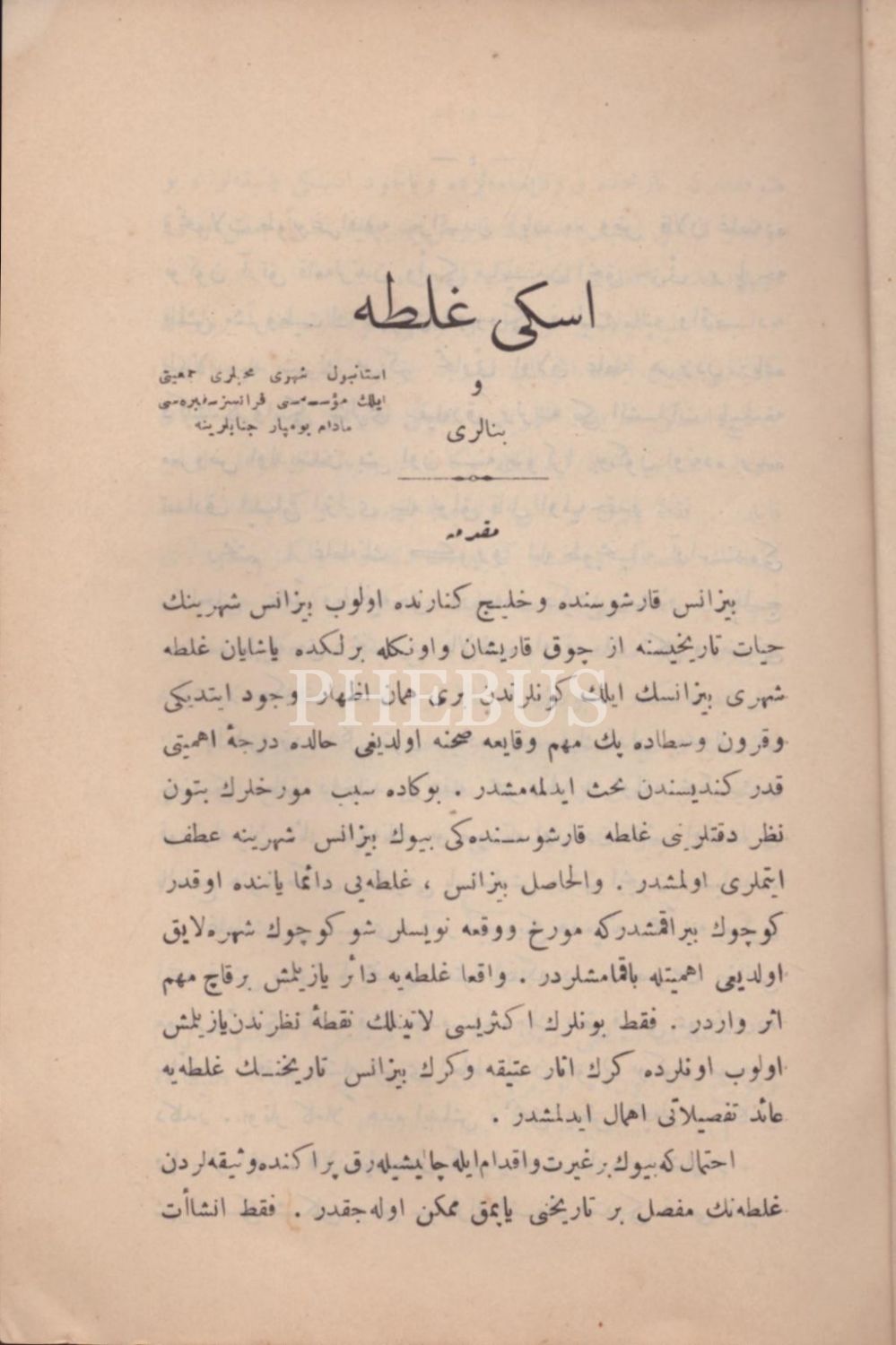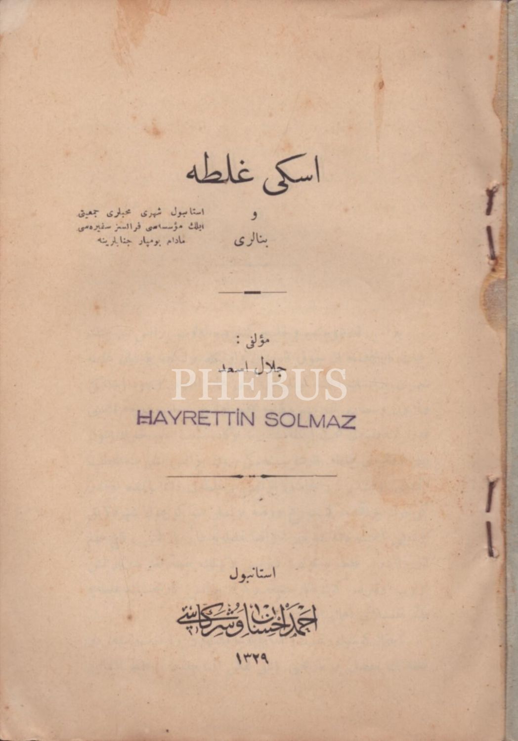 ESKİ GALATA VE BİNÂLARI, Celal Esad, Ahmed İhsan ve Şürekası Matbaacılık Osmanlı Şirketi, İstanbul 1329, 120 s., 14x20 cm