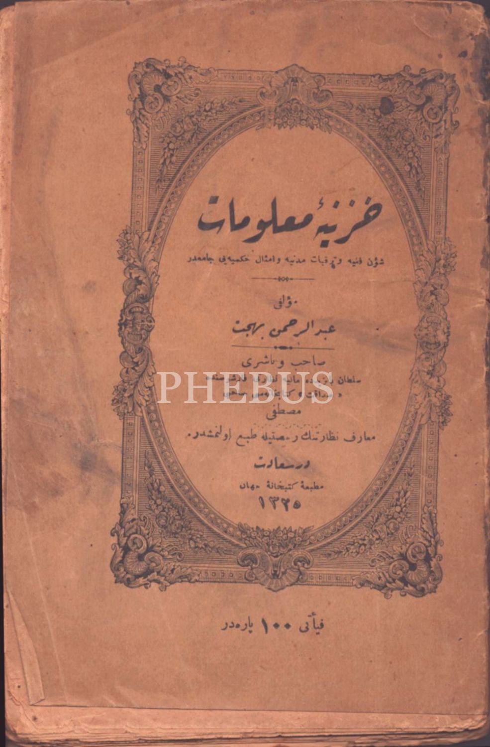 HAZÎNE-İ MA´LÛMÂT, Abdurrahman Behcet, Cihan Kütübhanesi Matbaası, İstanbul 1325, 96 s., 13x20 cm